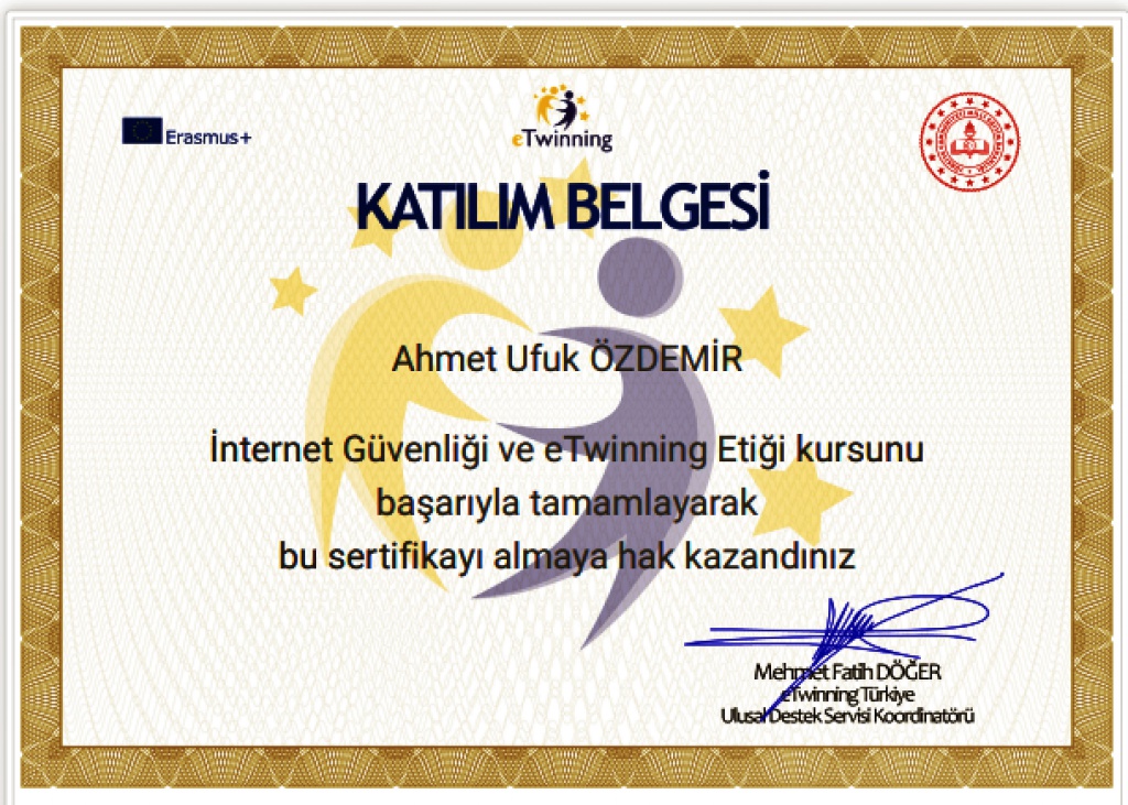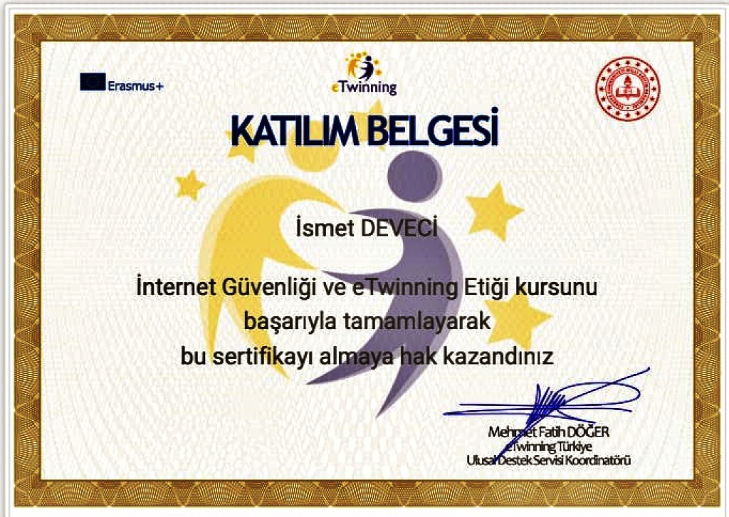 e-Güvenlik Okul Ekibimiz İnternet Güvenliği ve eTwinning Etiği Kursunu tamamlamışlardır.